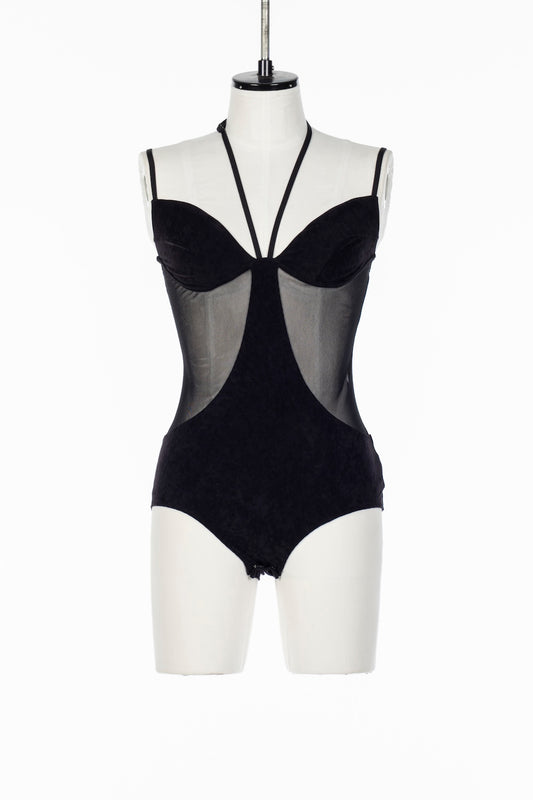 SHEER PANELED VELOUR BODYSUIT