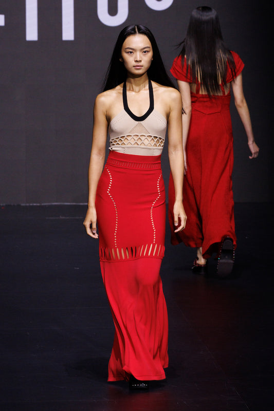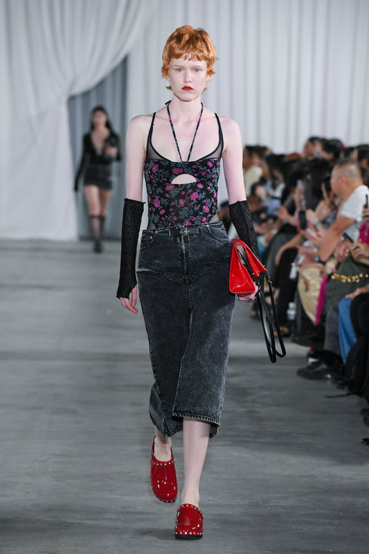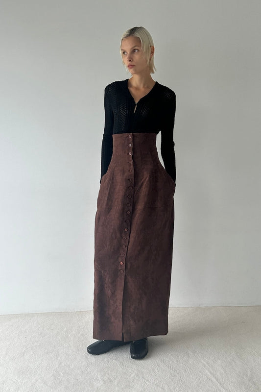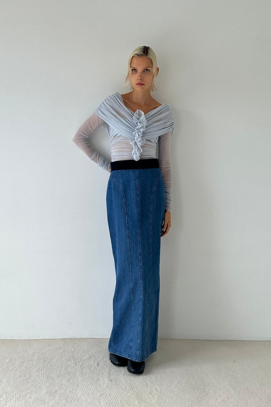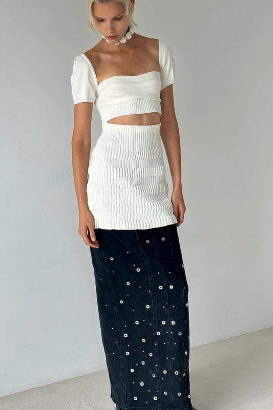 ORGANIC COTTON DENIM LONG SKIRT WITH STUDS