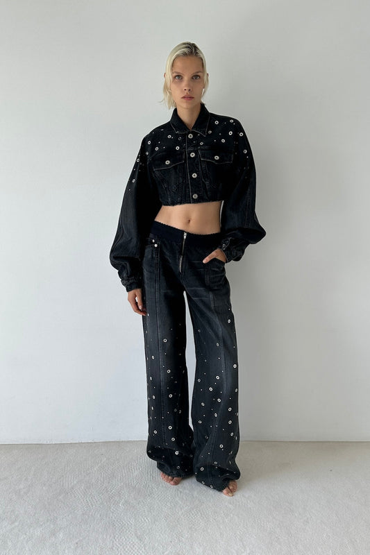 ORGANIC COTTON DENIM WIDE-LEG JEANS WITH STUDS