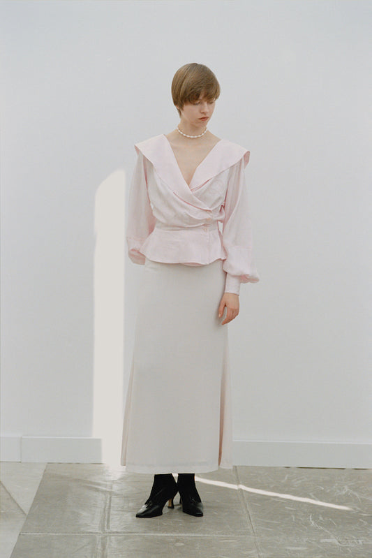 GAUZE SHIRRED HIGHNECK BLOUSE