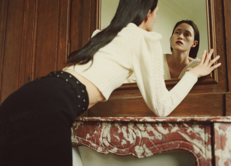 ROSE JAQUARD STRIPE SAILOR COLLAR BLOUSE